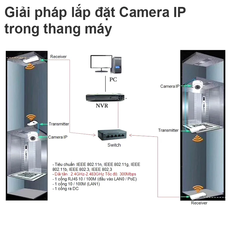 - Không dây: Băng tần làm việc: 2.4GHz-2.483GHz, tốc độ không dây: 300Mbps:
